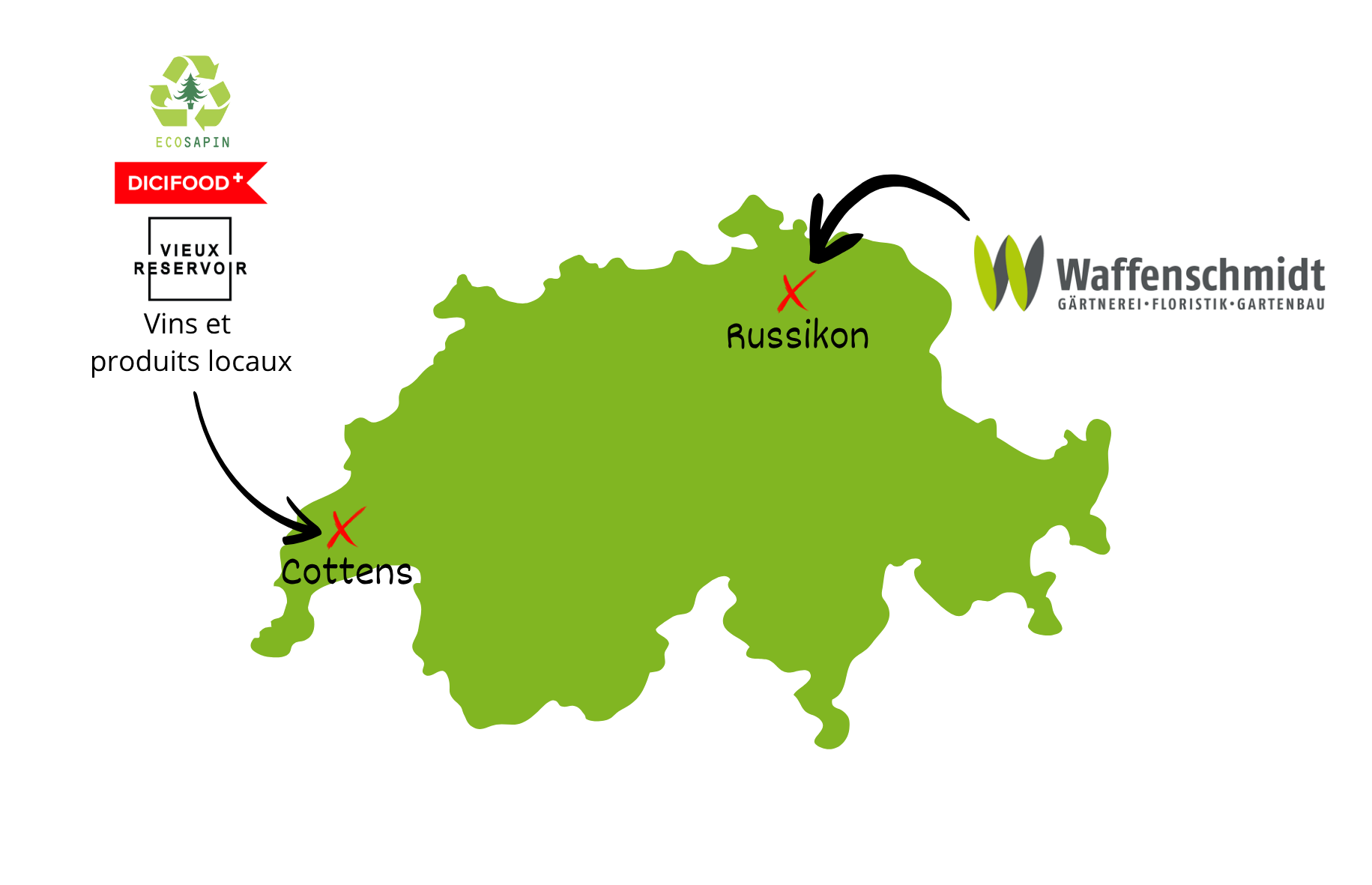 L'achat d'accessoires pour votre sapin se fait directement au magasin (pots de couleurs, décorations, bec arroseur). Pour l'achat d'un sapin vous recevez un bon de 5 CHF valable sur l'ensemble du magasin de Cottens VD et Russikon ZH.